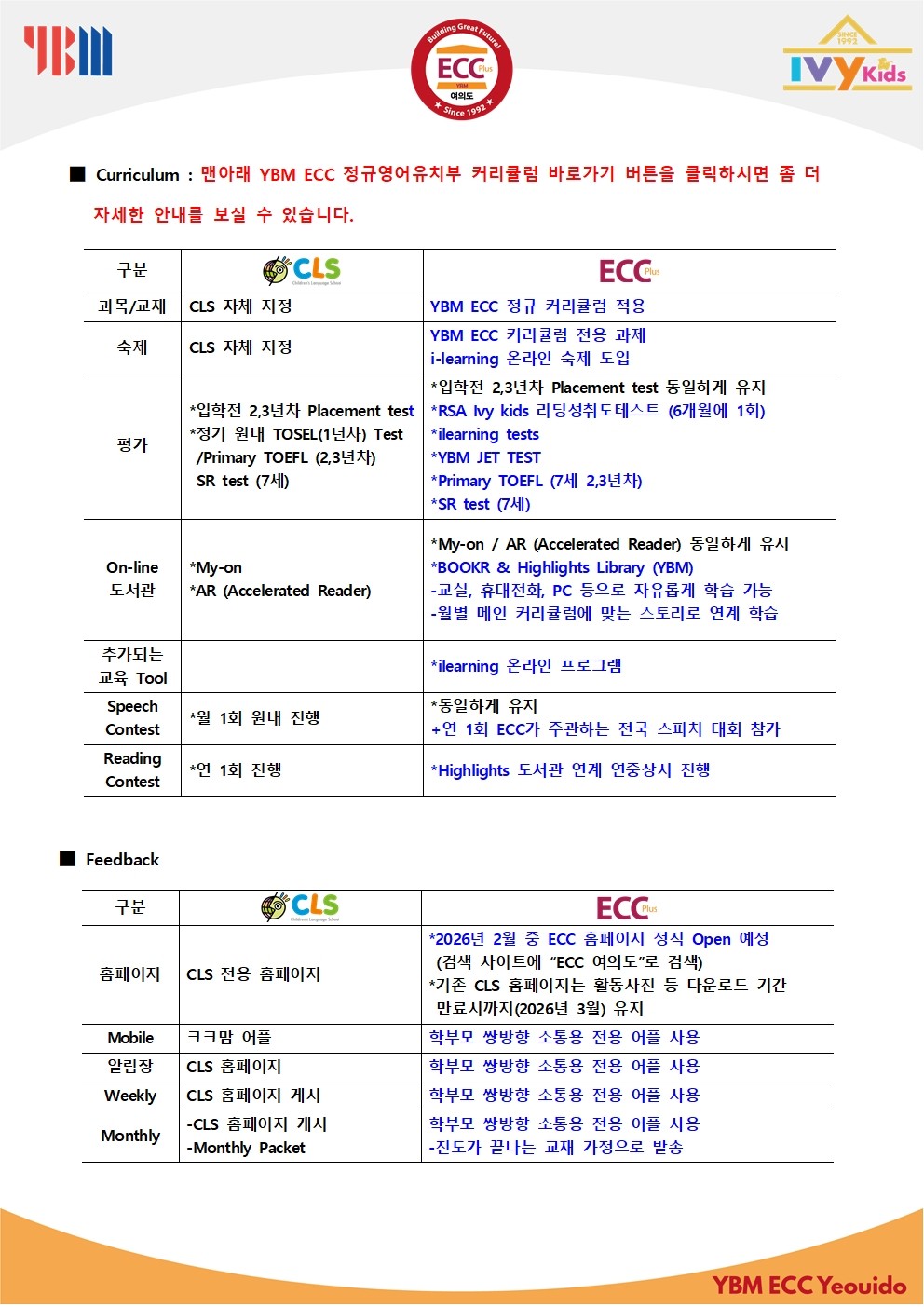 ✨YBM ECC 여의도캠퍼스 정규유치부 운영변경사항